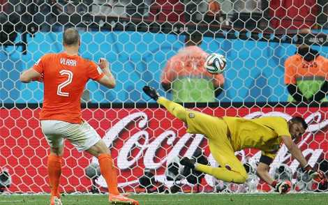 (VTC News)Ở lượt sút luân lưu đầu tiên trong trận Bán kết Argentina – Hà Lan, Ron Vlaar đã không thắng được thủ thành Sergio Romero.