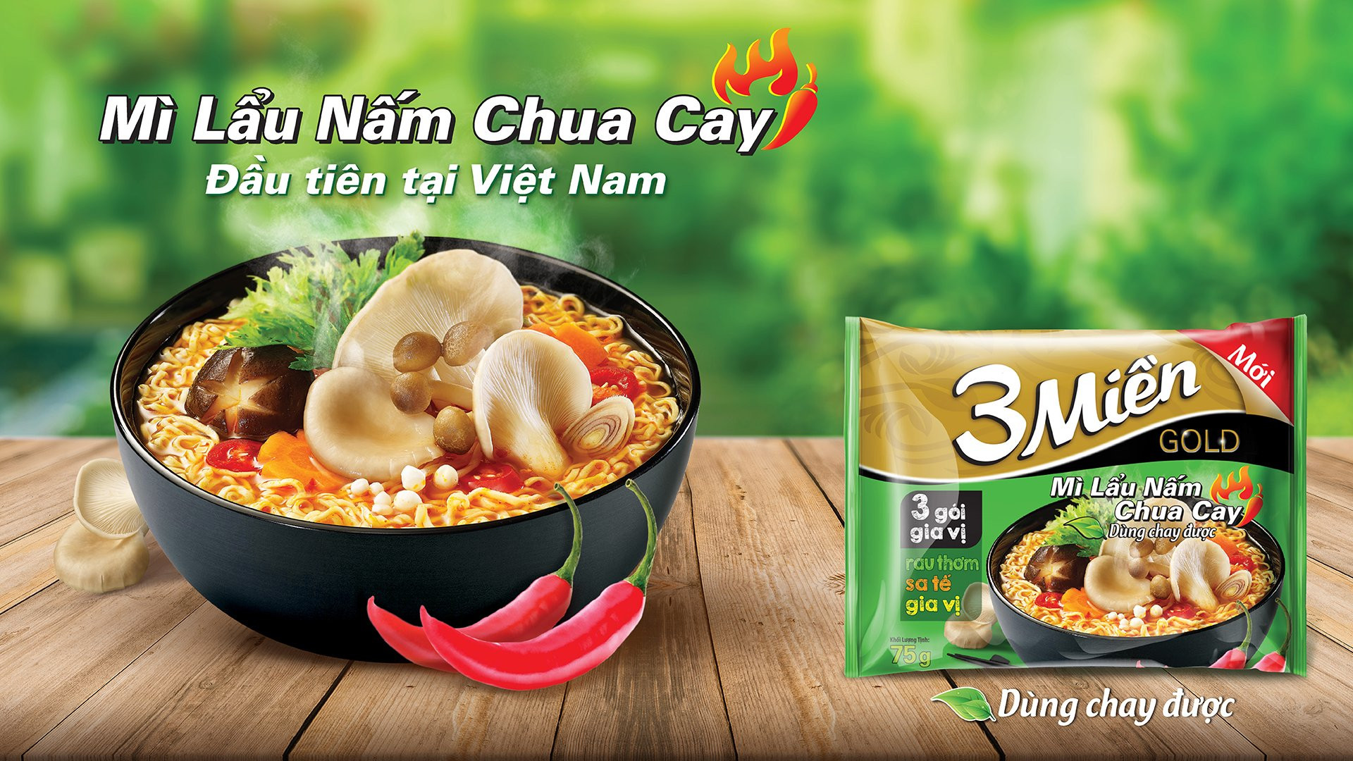 UNIBEN, đơn vị vừa nhận danh hiệu top 2 nhãn hiệu thực phẩm hàng đầu (Brand Food Print, Kantar Worldpanel 6/2017, khu vực nông thôn) vừa giới thiệu sản phẩm mới mì 3 Miền Gold Lẩu Nấm Chua Cay. Sản phẩm đáp ứng khẩu vị, sự ưa chuộng món lẩu nấm chua cay của người Việt Nam, đặc biệt không sử dụng các nguyên liệu như tỏi, hành, đáp ứng được nhu cầu của người ăn chay mà lại còn giúp bùng lên vị giác cho thực khách.