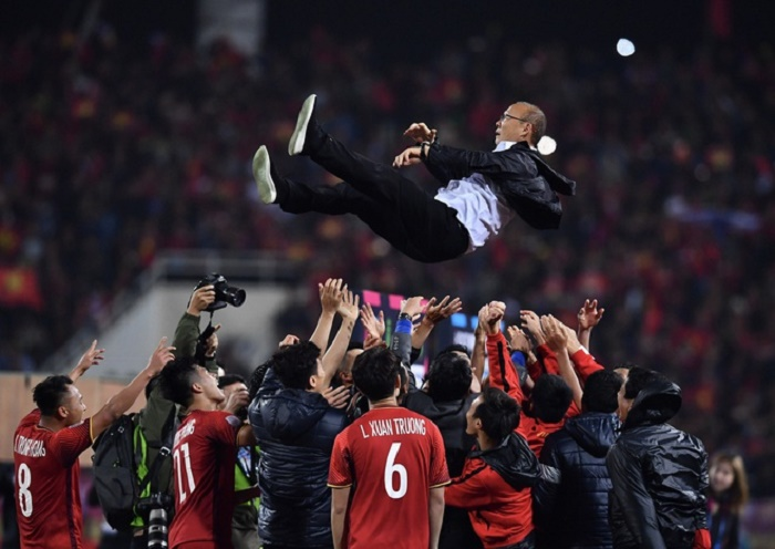 VFF và ông Park Hang Seo thu về hàng trăm tỷ đồng từ bản quyền hình ảnh đội tuyển Việt Nam trong 3 năm trở lại đây. (Ảnh: Thuận Thắng).