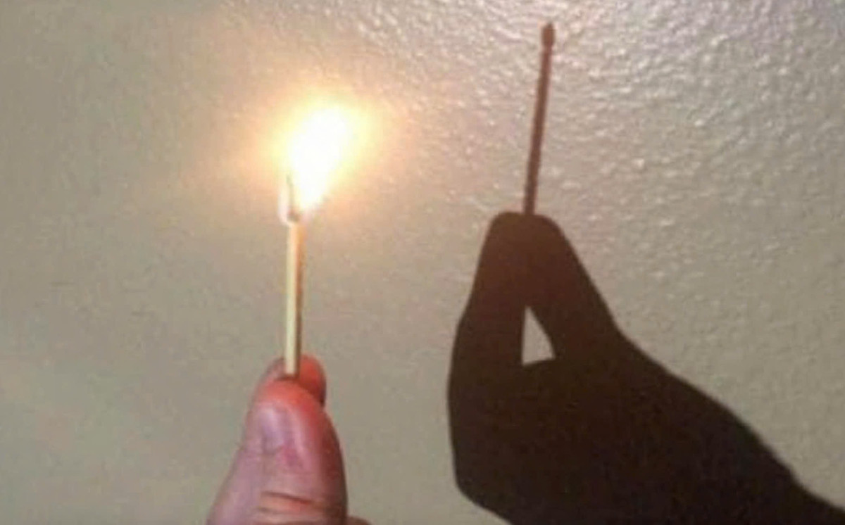 Bức ảnh về que diêm đang cháy nhưng không in bóng lên tường đang thu hút sự quan tâm của cộng đồng mạng. Nhiều người thắc mắc về hiện tượng đốm sáng đang cháy không in bóng trong khi bàn tay và thân que diêm lại in bóng lên bức tường.