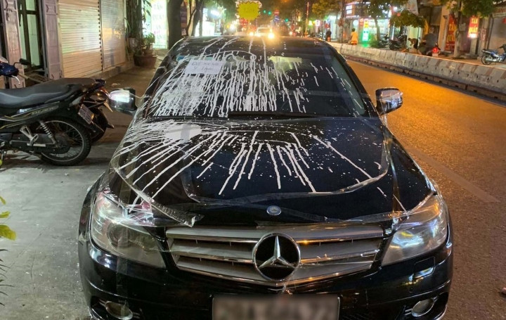 Chiếc ô tô bị "trút giận" khi đỗ trước một ngôi nhà.