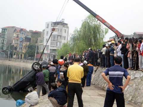 Theo các nhân chứng, do mới tập lái nên khi lùi xe vào chỗ đỗ tại bờ hồ Hoàng Cầu, tài xế đã ga quá mạnh khiến chiếc xe lao xuống hồ, cách bờ khoảng 30m.