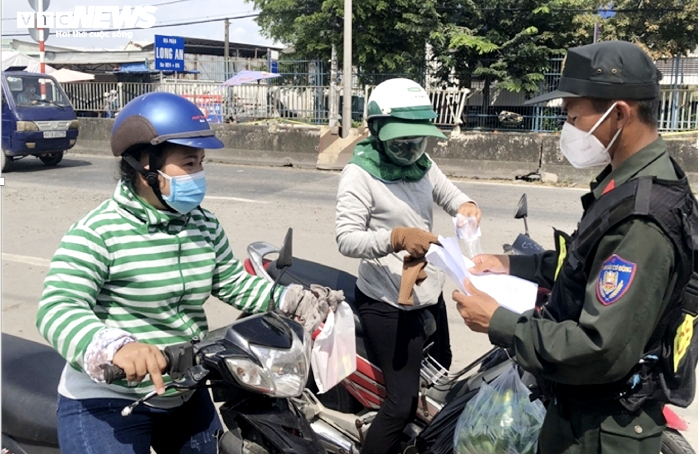 Người dân từ Long An vào TP.HCM và ngược lại bắt buộc phải có giấy xét nghiệm COVID-19 âm tính mới được qua chốt, ai không có giấy xét nghiệm còn hiệu lực không được qua chốt và bị yêu cầu quay đầu xe. Người được qua chốt phải khai báo di chuyển nội địa.