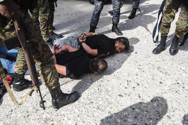 Nghi phạm ám sát Tổng thống Haiti Jovenel Moise bị ghì xuống đất sau khi bị bắt giữ. (Ảnh: AP)