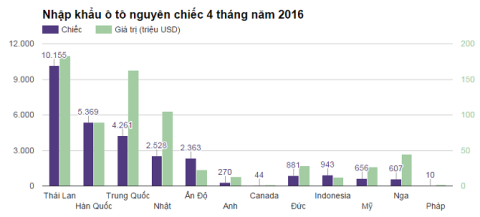 Thống kê từ Tổng cục Hải quan cho hay, trong 4 tháng đầu năm 2016, người Việt chi 732, 7 triệu USD mua 29.054 chiếc xe từ 12 quốc gia. So với cùng kỳ năm ngoái, sức mua sản phẩm này đang tăng mạnh cả về lượng và giá trị.