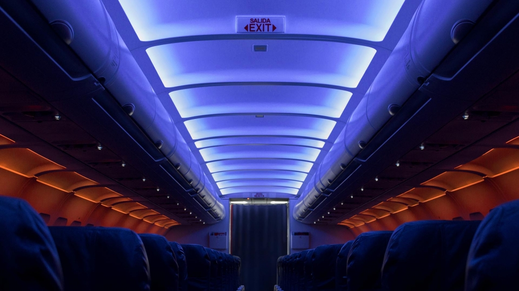 Ánh sáng trong may bay được điều chỉnh giảm khi cất cánh và hạ cánh.