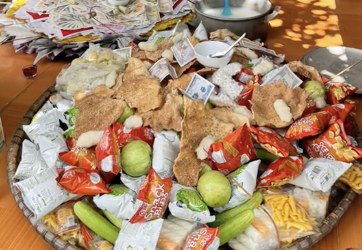 Mâm cúng chúng sinh tùy theo từng địa phương sẽ khác nhau. (Ảnh: thuhoai.2502)