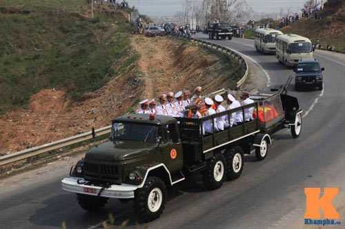 | Đoàn xe tang di chuyển từ Sân bay Đồng Hới về Vũng Chùa (Quảng Bình) - nơi an táng Đại tướng Võ Nguyên Giáp (Ảnh: Hồng Phú) |