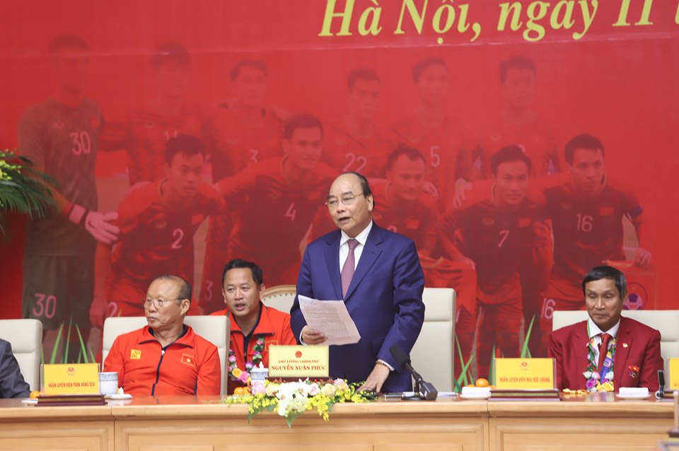 "Việt Nam có câu “thắng không kiêu, bại không nản”, vì vậy cả hai đội tuyển không được chủ quan và Chính phủ, ngành thể thao mong muốn bóng đá nước nhà sẽ đi xa hơn nữa, sắp tới là giải U23 châu Á và vòng bán kết của World Cup. Đặc biệt năm 2021, Việt Nam là chủ nhà của SEA Games thì việc bảo vệ những thành quả đã đạt được là thách chức cho các cầu thủ và huấn luyện viên", Thủ tướng nói.