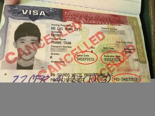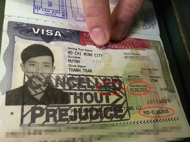 Ngày hết hạn của visa P3 là tháng 9/2016 nhưng dưới đó là ký hiệu PED -24OCT2015. Vì thế Sở di trú Mỹ từ chối cho Trấn Thành nhập cảnh. Ảnh: Thanh Huyền |
