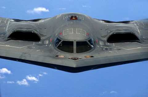 Máy bay ném bom B-2 có kiểu dáng như một con dơi khổng lồ, không có cánh đuôi, cánh chính được kéo dài kỳ lạ. Cách thiết kế này giúp máy bay đánh trượt sóng radar đi hướng khác, hoặc hấp thụ, giảm được sóng phản xạ, làm hình ảnh trên màn hiện sóng radar bị yếu (hoặc không có).
