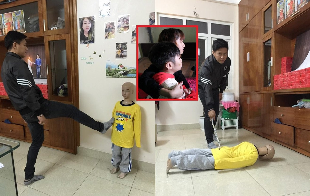 Mỗi khi đánh đập con, Nam còn bắt con mình nằm úp mặt xuống đất rồi lấy móc áo cuộn tròn thành một chiếc roi sắt, thẳng tay đánh đập khiến bé sợ hãi. Không những thế, anh ta còn lôi con từ phòng khách vào trong bếp, bắt con đứng sát vào tường để hành hạ.