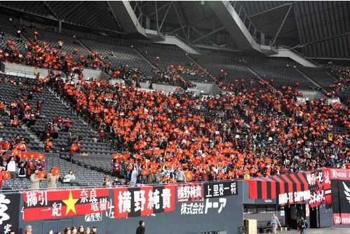 | Sân Sapporo Dome rử đỏ với cờ Việt Nam khi Công Vinh vào sân |