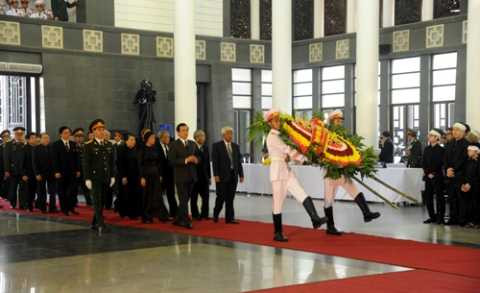 | Thủ tướng Nguyễn Tấn Dũng dẫn đầu đoàn đại biểu Chính phủ viếng Đại tướng và chia buồn cùng gia quyến |