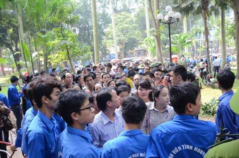 | Rất đông người dân xếp hàng dài trước nhà tang lễ chờ vào viếng Đại tướng Võ Nguyên Giáp. |