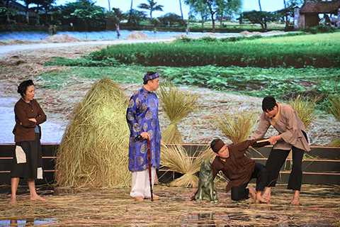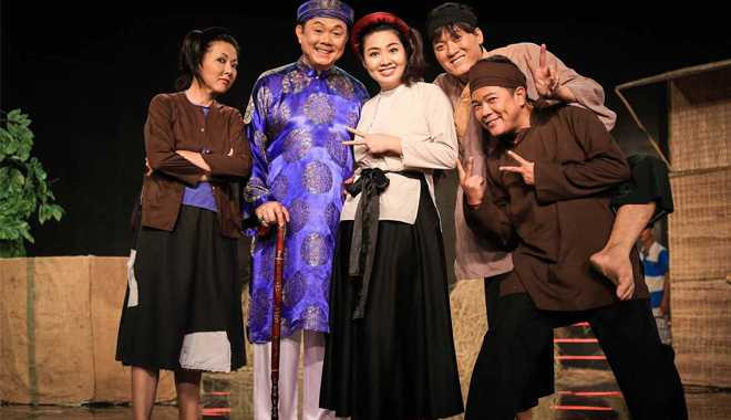Trên sân khấu, danh hài Chí Tài trong trang phục áo dài khăn đóng của một phú hộ quyền uy. Tuy nhiên với khuôn mặt hài hước, đáng yêu của mình, anh liên tục “làm trò” để chọc ghẹo bạn diễn nhằm xả stress sau những giờ diễn căng thẳng.