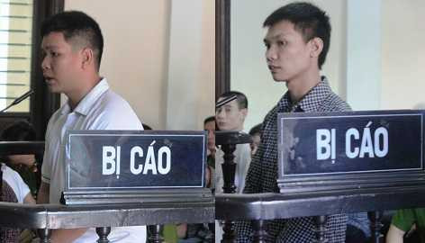 | Bị cáo Hà (áo trắng) và Đô tại phiên tòa xét xử |