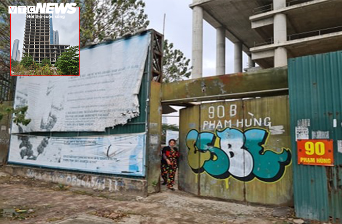 Ngày 17/3, có mặt tại lô đất trên chúng tôi ghi nhận tòa tháp VICEM TOWER chỉ là công trình “xác khô” mới hoàn thiện phần thô, công trường không có bất kỳ hoạt động xây dựng nào, cổng luôn đóng kín. Nhiều hạng mục xây dựng bị thời gian bào mòn, bê tông rêu mốc, khung sắt hoen rỉ. Một số khu vực đọng nước hôi thối, đầy ruồi muỗi. Phần đất chưa xây cỏ hoang mọc ngút đầu người.