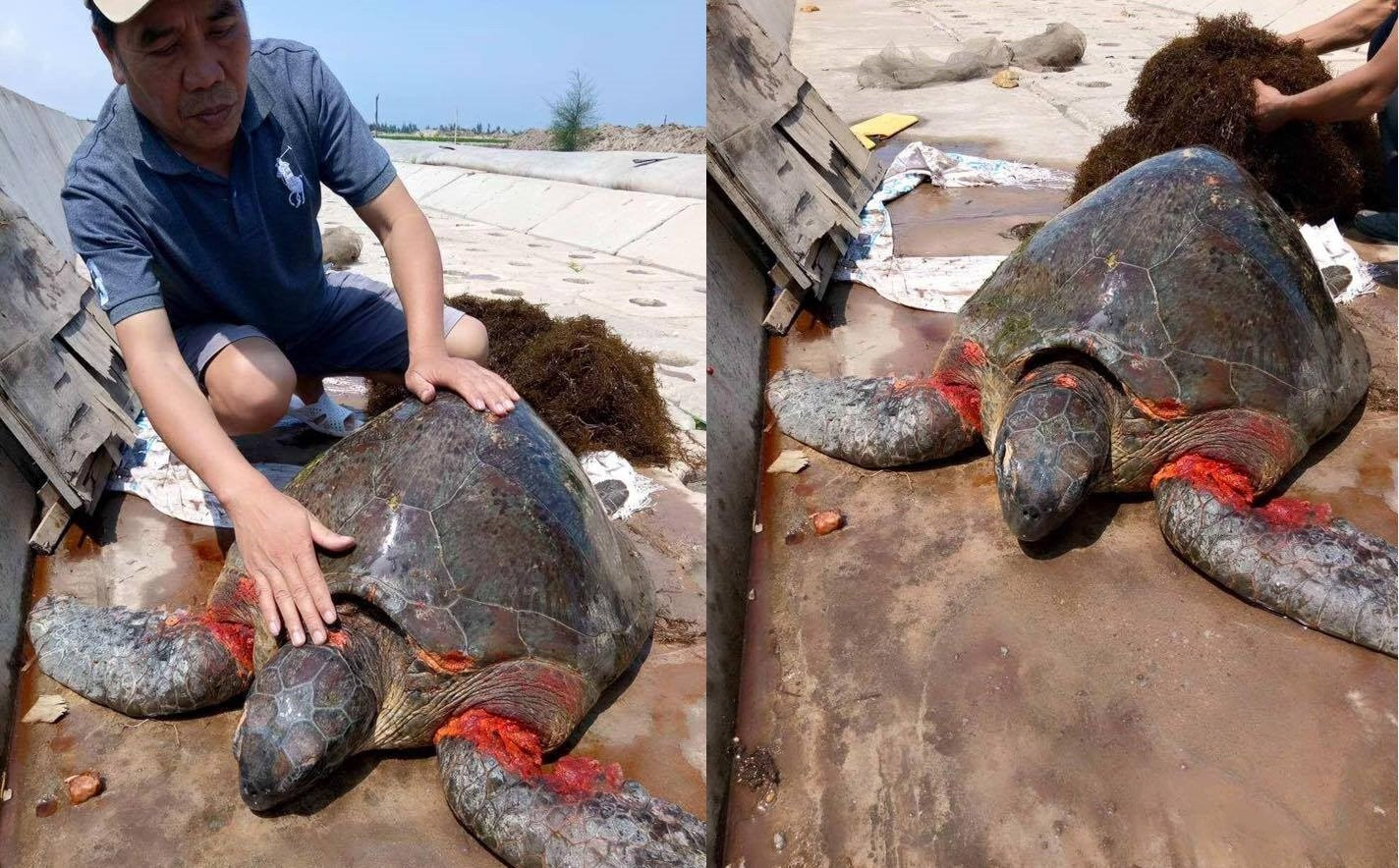 Sáng 18/ 4, thông tin từ người dân tại thị trấn Thịnh Long (Hải Hậu, Nam Định) cho biết, một con Vích biển nặng khoảng 40kg nghi dính lưới sứa của ngư dân nên bị thương ở chân. Con vật quý hiếm dạt vào nằm ở cửa sông, gần khu vực đầm nuôi tôm của người dân.