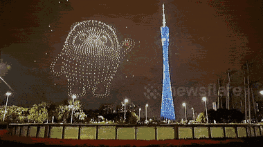 1.000 máy bay không người lái bay trên bầu trời tại Quảng Đông, Trung Quốc tạo hình linh vật của Thế vận hội mùa đông 2022.