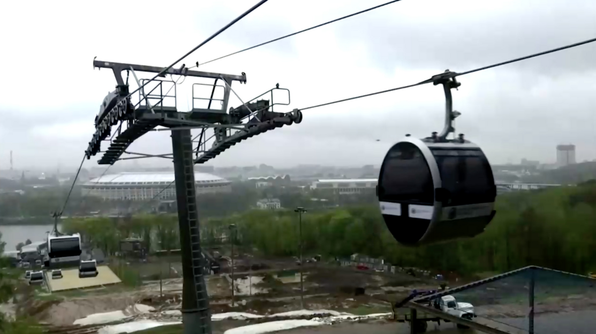 30 đôi vợ chồng người Nga cùng nhau tổ chức đám cưới tập thể trên cáp treo đang di chuyển ở thủ đô Moskva (Nga), bấp chất thời tiết mưa gió.