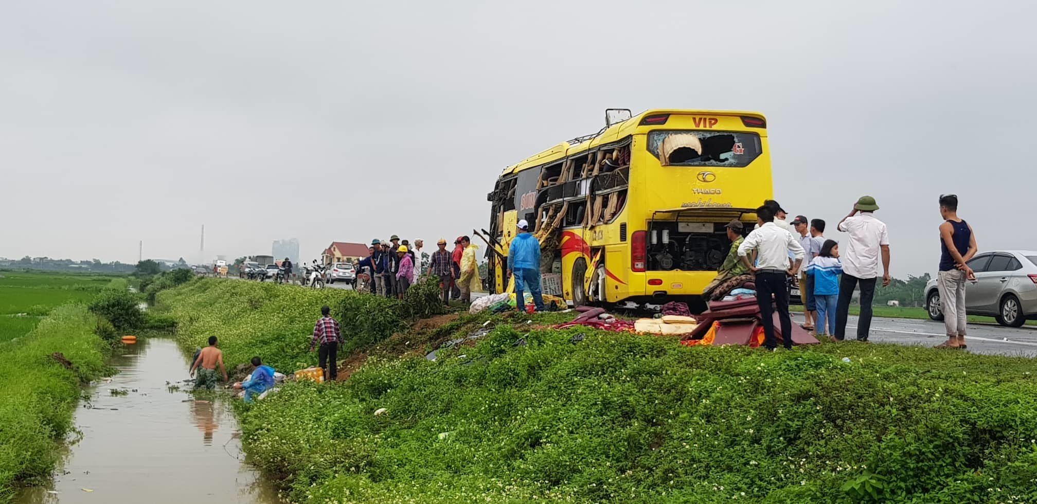 Theo thông tin ban đầu, khoảng 5 giờ sáng, xe ô tô 45 chỗ màu vàng biển số 17B-017.26 đang lưu thông hướng từ Ninh Bình đi Hà Nội bất ngờ bị lật. Đúng lúc này, xe khách 45 chỗ màu đỏ biển số 34B-016.91 chạy cùng chiều không làm chủ tốc độ đã đâm vào xe khách màu vàng.
