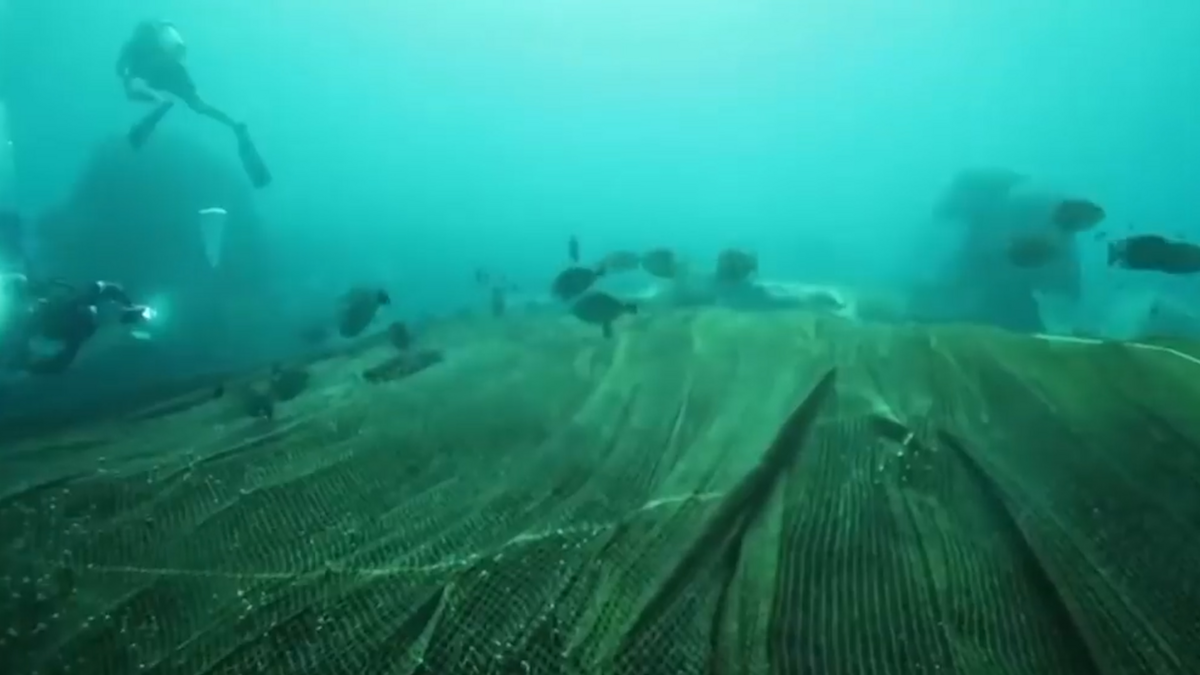 40 thợ lặn gỡ bỏ lưới đánh cá rộng 2.750 m2 bao phủ các rạn san hô ở một khu bảo tồn tại vịnh Thái Lan trong 2 ngày.