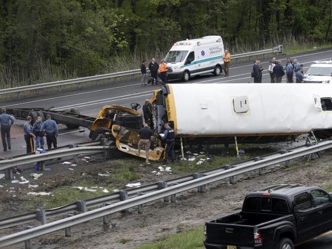 Tới Xa lộ Liên tiểu bang 80 ở Mount Olive, cách New York 80 km, chiếc xe bất ngờ va chạm với một chiếc xe tải chở rác. Cú va chạm mạnh khiến xe buýt bị lật nghiêng với phần đầu xe bị nghiền nát.