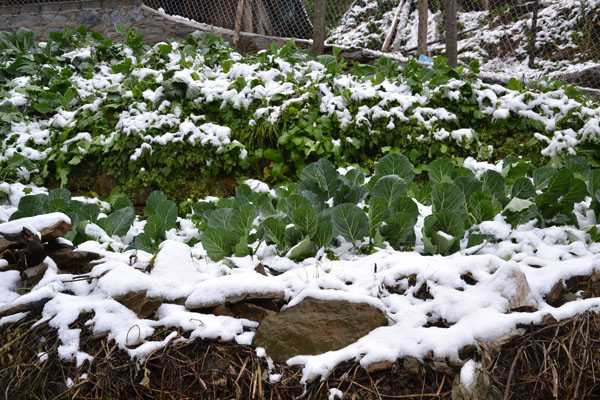 | Băng tuyết trắng cả vườn rau (Ảnh: Diệp Hằng |