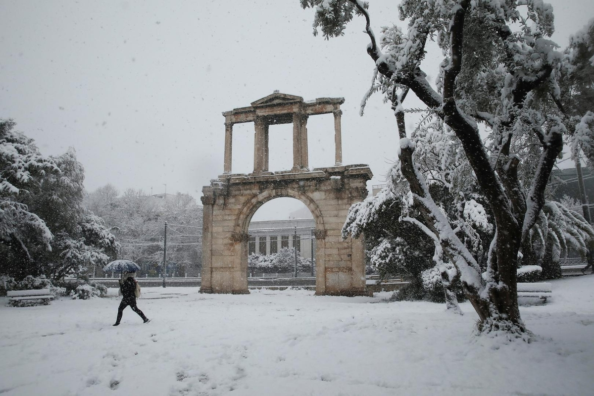 Trận tuyết rơi dày nhất trong hơn một thập kỷ phủ trắng những công trình lịch sử tại Athens, Hy Lạp.