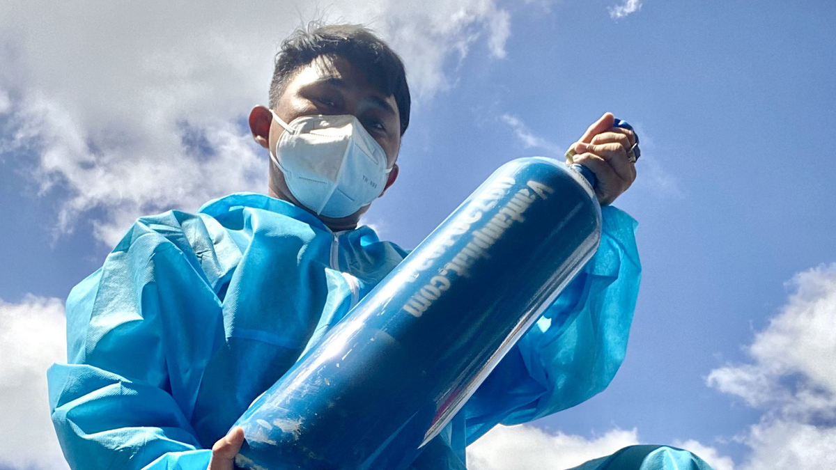 Anh Hoàng Tuấn Anh, cha đẻ của "ATM gạo", vừa tham gia thành lập "ATM Oxy" cung cấp miễn phí bình oxy cho bệnh nhân COVID-19 đang cách ly tại nhà.