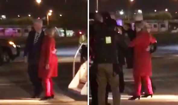 Trong đoạn video vừa được Bloomberg đăng tải, khi bước tới cuối bậc thang của máy bay, bà Hillary bị bước đi loạng choạng và phải nhờ sự trợ giúp của chồng mới có thể tiến đến gần chiếc xe đang đầu gần đó.