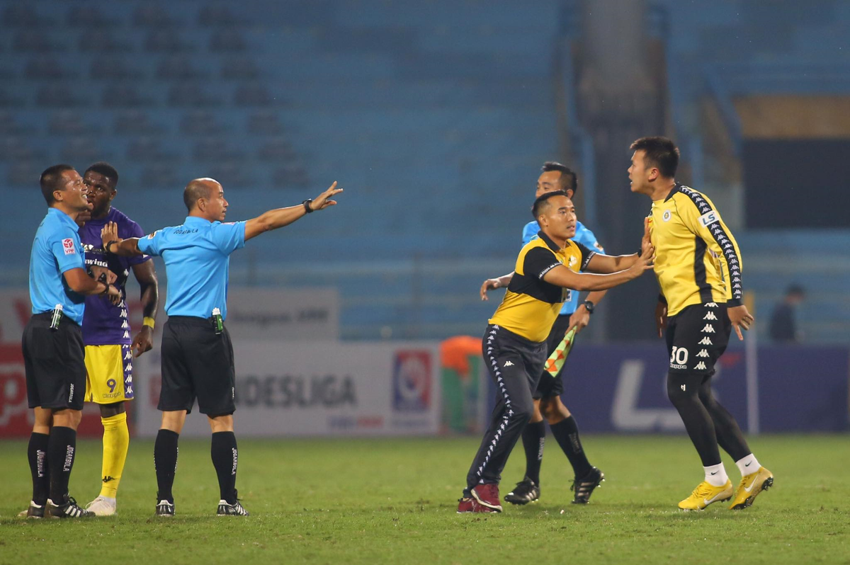 Đến cuối hiệp 1, họ tiếp tục phản ứng khi trọng tài chính Nguyễn Đình Thái không thổi phạt tình huống Rimario bị truy cản trước vạch 16m50.