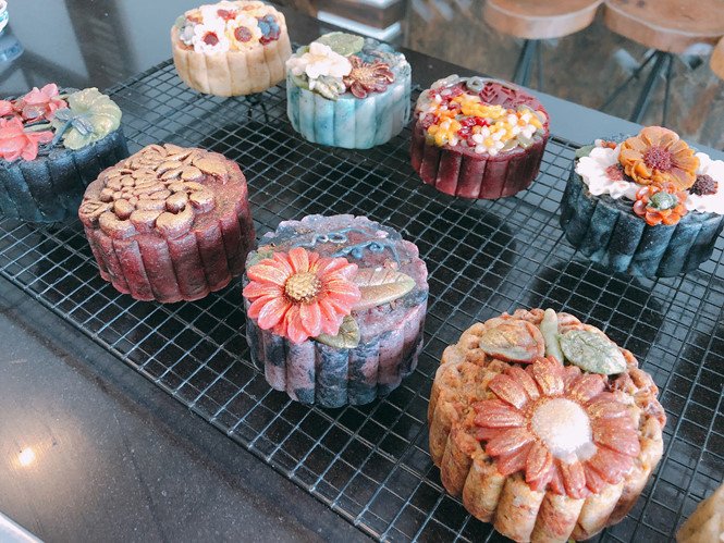 Được biến tấu từ bánh trung thu truyền thống, nhưng những chiếc bánh điêu khắc có màu sắc đa dạng hơn, các họa tiết trang trí đều được khắc nổi rất tỉ mỉ và tinh tế.