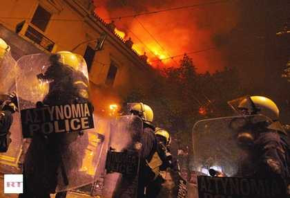 Đụng độ xảy ra sau khi hơn 100.000 người biểu tình hòa bình để phản đối chính sách thắt lưng buộc bụng đe dọa gây ra nạn thất nghiệp nghiêm trọng và cắt giảm 20% lương cơ bản. Bạo lực đã nổ ra với hơn 2000 người quá khích và nhanh chóng la rộng khắp Hy Lạp ở Thessaloniki, Volos, Agrinio, quần đảo Corfu và Crete.