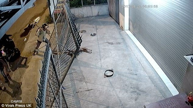 Hình ảnh trong video được Daily Mail đăng tải cho thấy, 2 người đàn ông đỗ xe bên một hàng rào sắt phía trước một căn nhà sau đó dùng xiên chĩa và súng điện xử lý 3 con chó trong nhà một cách nhanh chóng.