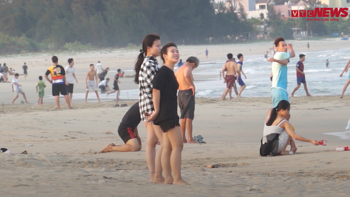 Video: Bất chấp lệnh cấm, người dân Quảng Ngãi nườm nượp đi tắm biển