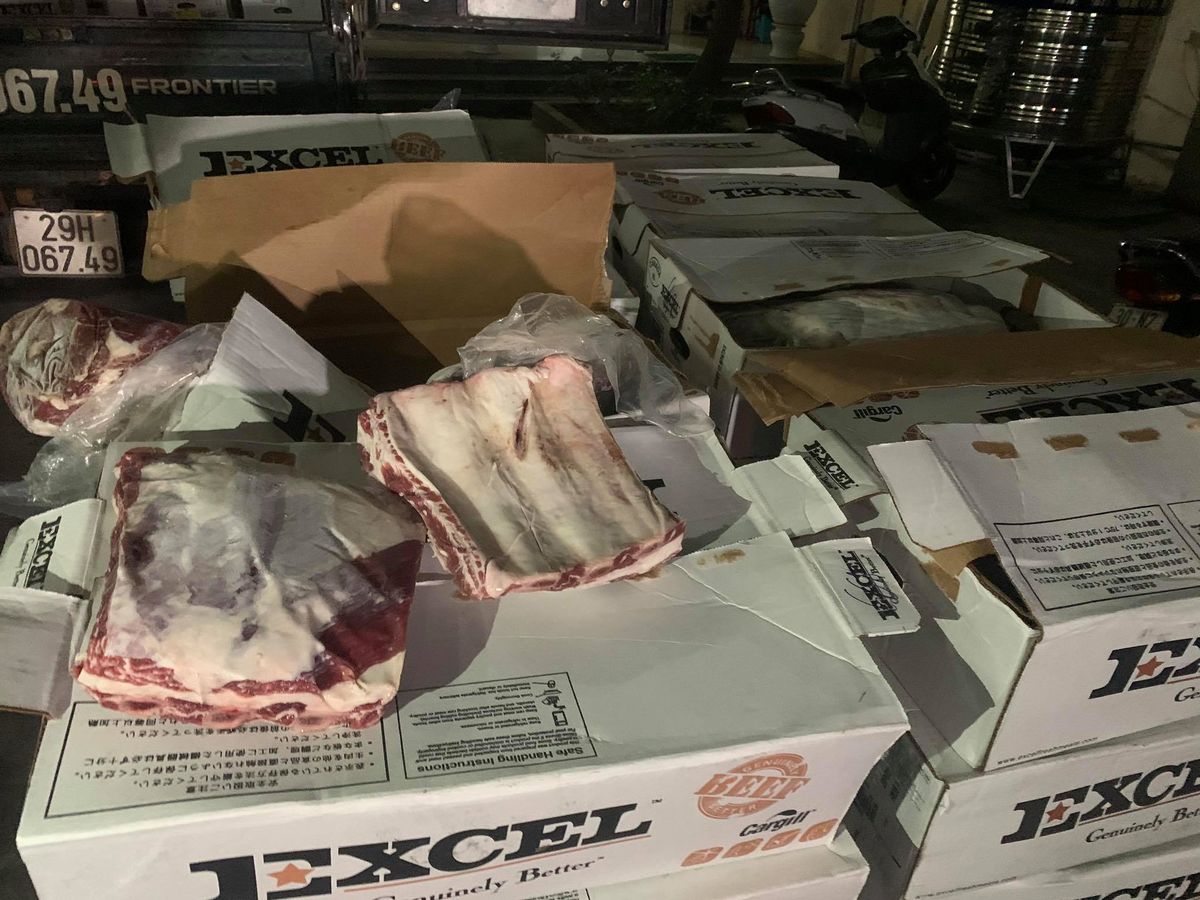 Đội CSGT số 10 công an TP. Hà Nội và đội quản lý thị trường số 26 Cục quản lý thị trường Hà Nội phát hiện và thu giữ hơn 1 tấn thị bò nhập khẩu đã quá hạn sử dụng.