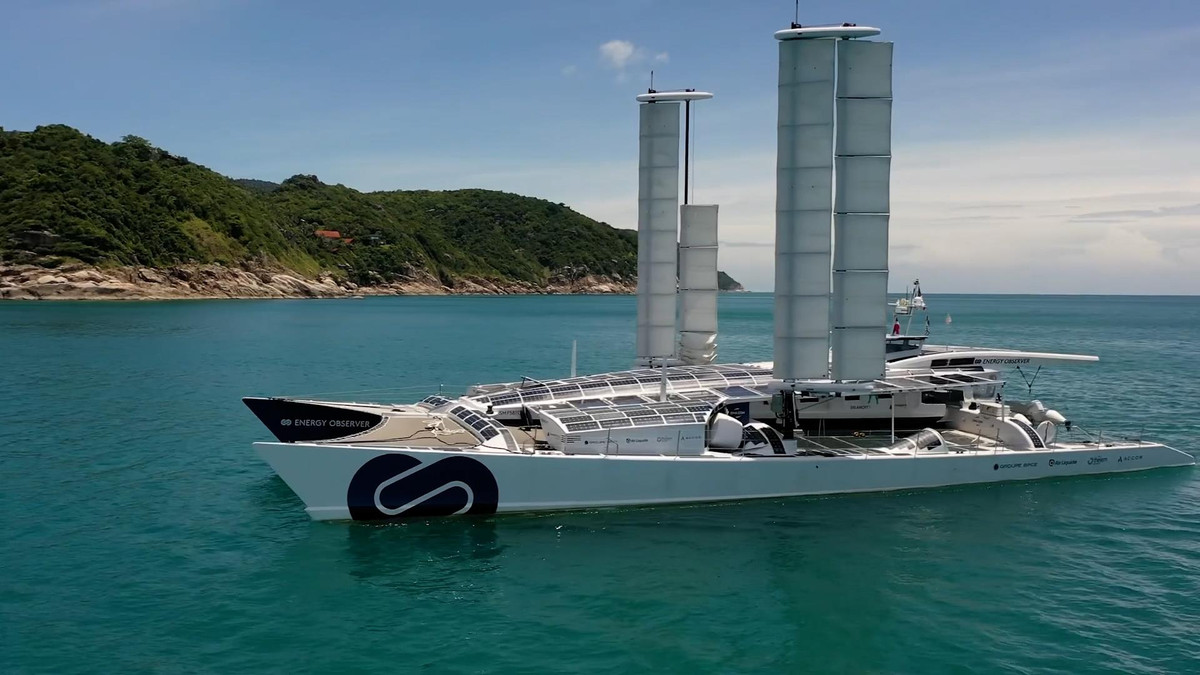 Tàu Energy Observer khởi hành từ Pháp năm 2017 và đi vòng quanh thế giới hơn 5 năm mà không cần đổ nhiên liệu, hiện cập cảng Khánh Hội (TP.HCM) từ 18 đến 29/6.