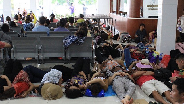 Tại các bệnh viện, bệnh nhân lúc nào cũng đông đúc. Trong cái nóng như thiêu đốt, cả bệnh nhân lẫn người nhà đều tỏ ra mệt mỏi.