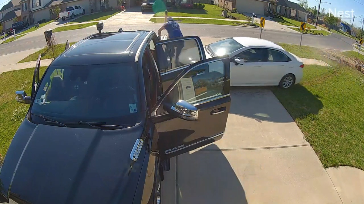 Bị ô tô đâm thẳng khi đang dừng đỗ xe, người đàn ông kịp thời nhảy lên mui xe, may mắn thoát chết.