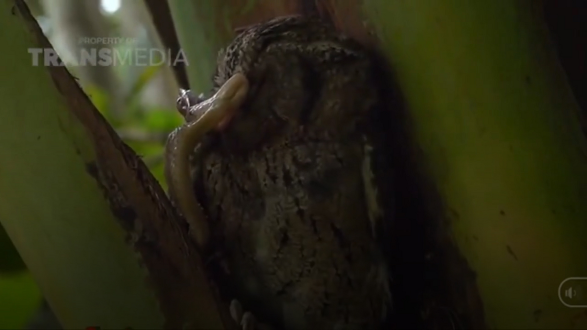 Mặc dù bị rắn ráo cắn vào mặt nhưng cú mèo mẹ vẫn cố gắng đuổi con rắn đi để bảo vệ con non của mình.