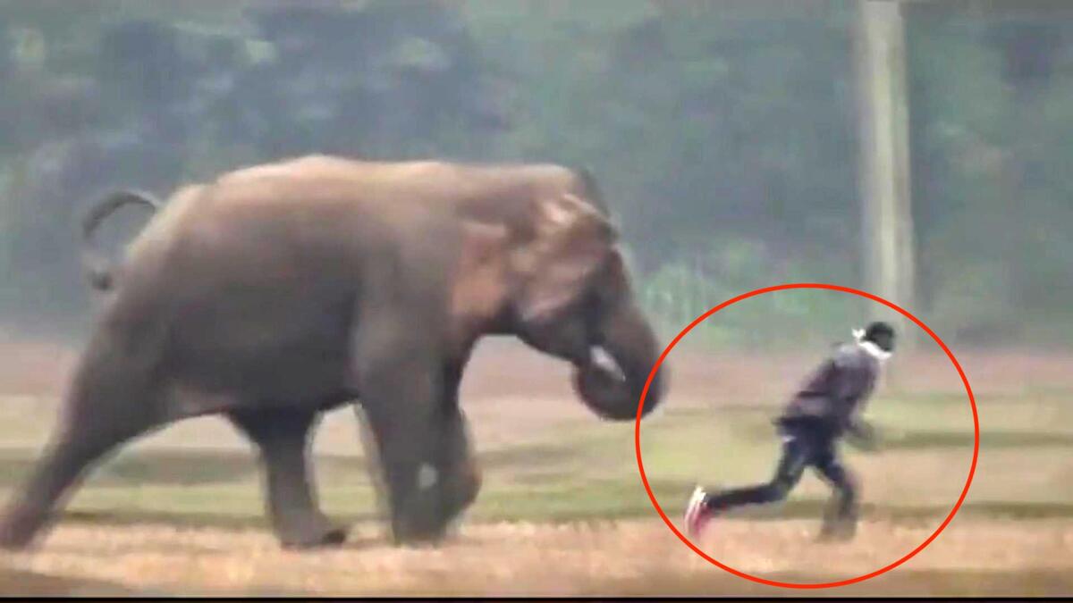 Video: Voi rừng rượt đuổi, người đàn ông chạy thục mạng
