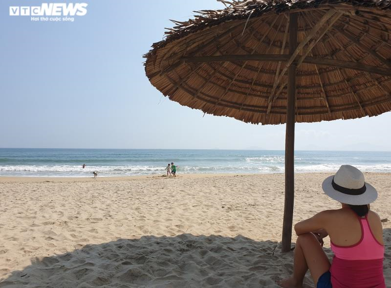 Biển An Bàng (TP.Hội An) lác đác vài người tắm, chủ nhà hàng mỏi mắn chờ du khách dịp lễ 30/4-1/5.