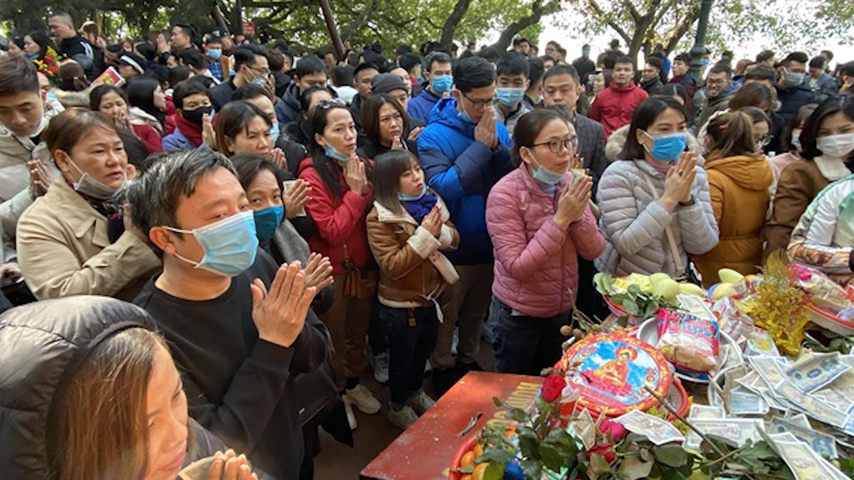 Ngày 13/1 (tức mùng 1 tháng Chạp), hàng nghìn người đổ về Phủ Tây Hồ, Hà Nội đi lễ cuối năm.