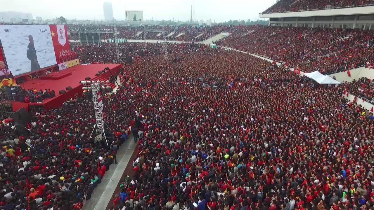 Video: Biển người 'nhuộm đỏ' sân Mỹ Đình cổ vũ U23 VN nhìn từ flycam