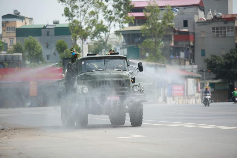 Binh chủng Hóa học vừa phun khử khuẩn Bệnh viện K (Tân Triều, Thanh Trì, Hà Nội) sau khi nơi này ghi nhận 10 ca dương tính với SARS-CoV-2.