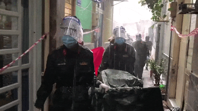 Chiều 26/8, chiến sĩ Trung đoàn 88, Sư đoàn 302 - Quân khu 7 dầm mưa vận chuyển lương thực đến từng nhà dân tại phường Phú Thuận, Quận 7.