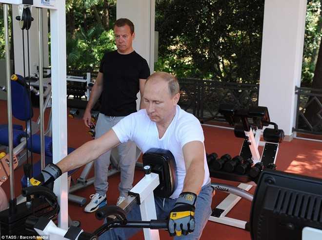 (VTC News) - Tổng thống Nga Vladimir Putin và Thủ tướng Dmitry Medvedev đã có buổi tập thể hình và dùng điểm tâm cùng nhau tại dinh thự Bocharov Ruchei ở Sochi sáng 30/8.