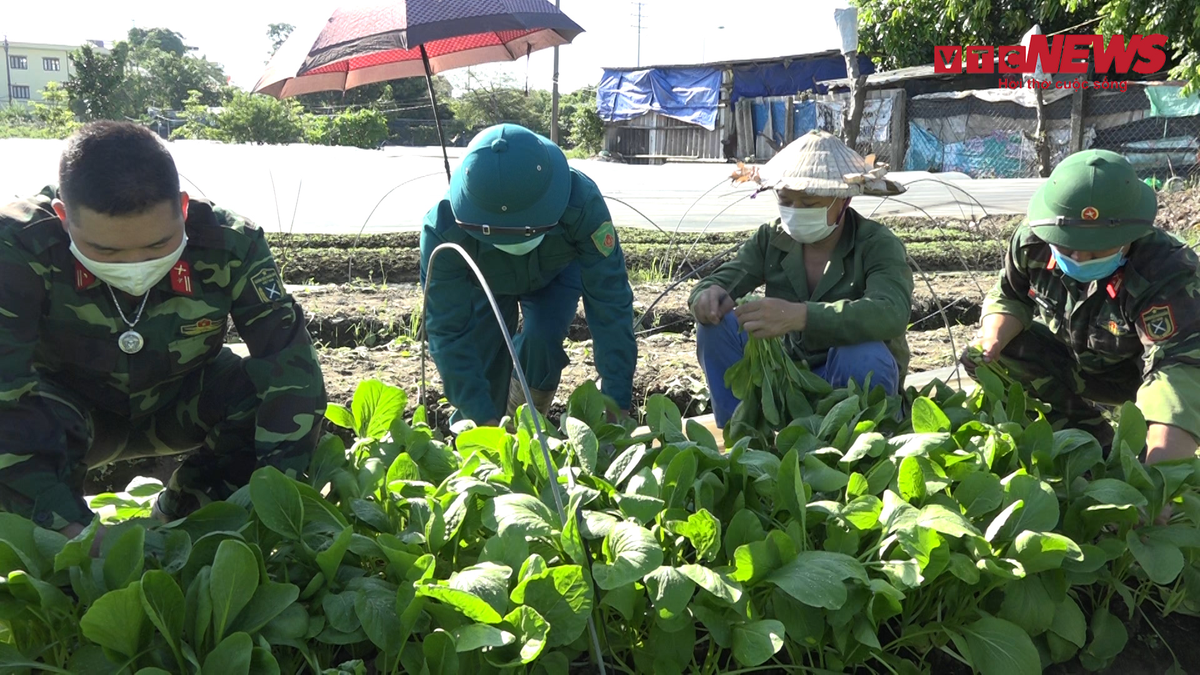 Ban Chỉ huy quân sự huyện Mê Linh(Hà Nội) và lực lượng vũ trang địa phương xuống đồng thu hoạch, vận chuyển hoa màu đi tiêu thụ giúp người dân.